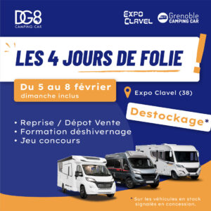 4 jours de déstockage camping-car à Grenoble : rendez-vous chez EXPO CLAVEL du 5 au 8 février inclus ! Ouvert dimanche, +100 véhicules !