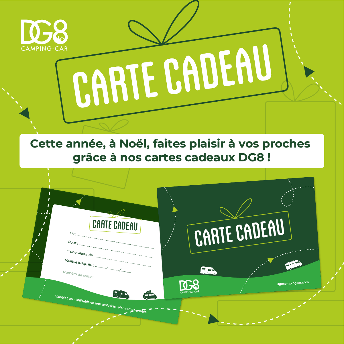Vous cherchez le cadeau parfait pour Noël ou pour les fêtes de fin d’année ? Avec la carte cadeau DG8 CAMPING-CAR, offrez davantage qu’un objet : offrez des moments inoubliables, de la liberté et l’opportunité de vivre une véritable aventure en véhicule de loisirs.