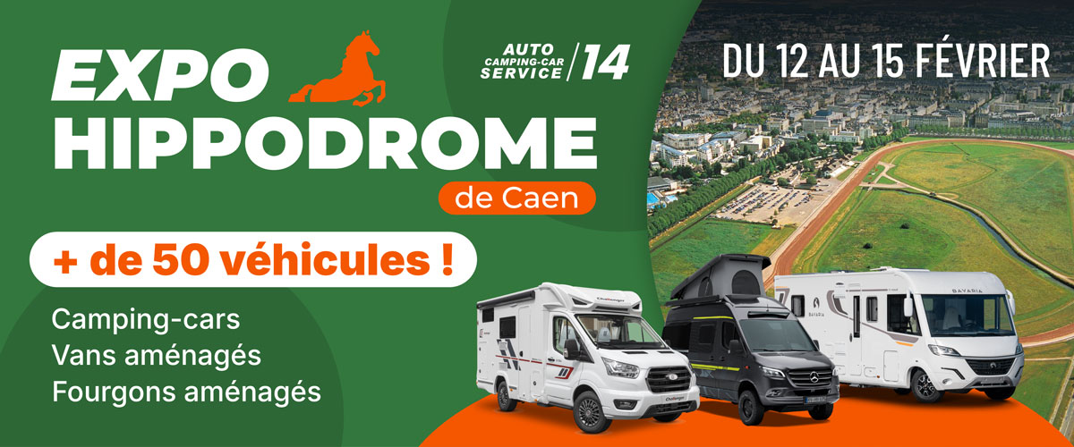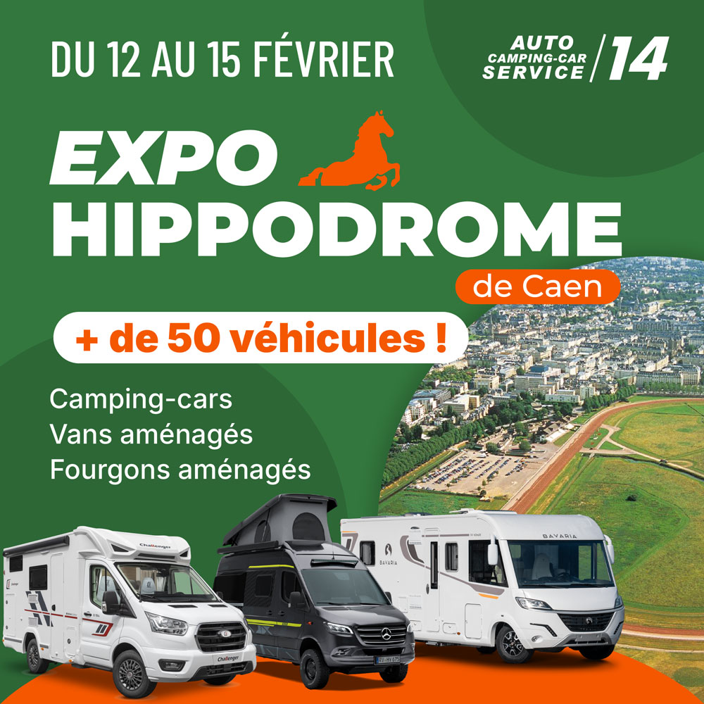 Après le succès rencontré à l’Hippodrome de Vire, notre roadtrip se poursuit en Normandie avec une nouvelle étape incontournable : l’Hippodrome de Caen ! Du 12 au 15 février inclus, nous vous donnons rendez-vous pour une exposition-vente exceptionnelle de camping-cars à Caen, avec l'équipe d'Auto Camping-car Service 14.