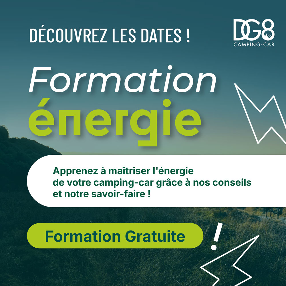 Nos formations énergie camping-car sont animées par des experts et conseillers DG8 Camping-car, spécialistes du véhicule de loisirs. Elles sont entièrement gratuites, mais l’inscription est obligatoire pour participer. Attention : le nombre de places est limité !