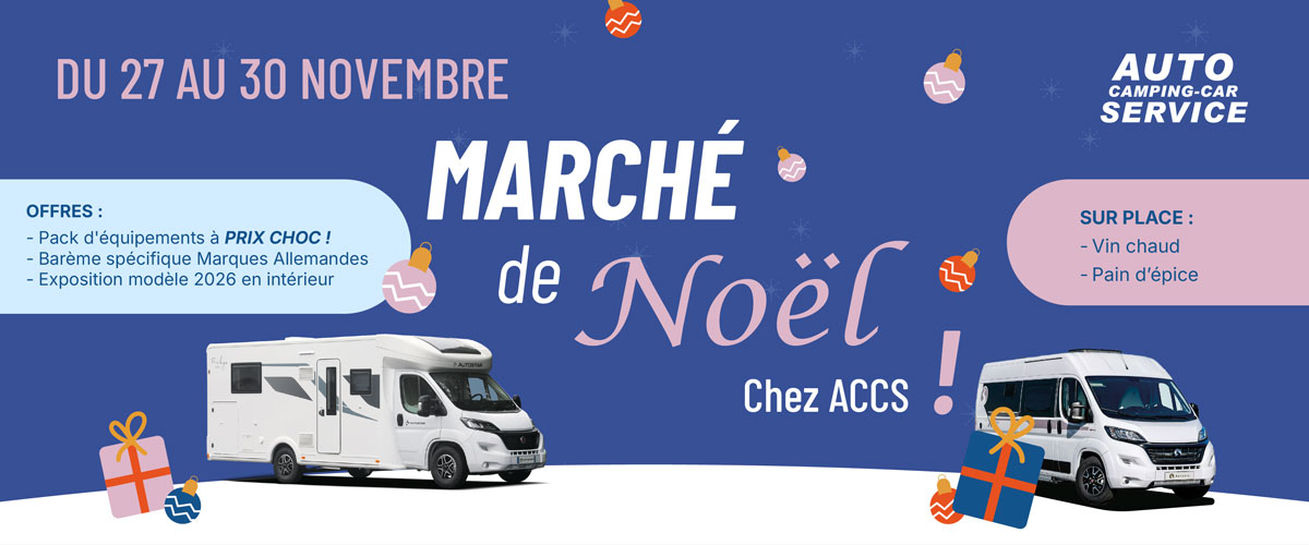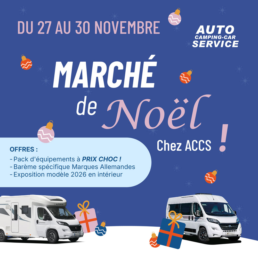 L’esprit de Noël est arrivé chez Auto Camping-car Service et, cette année, nous avons décidé de vous offrir un cadeau un peu spécial : notre Hall se transforme en Marché de Noël ! 🎁