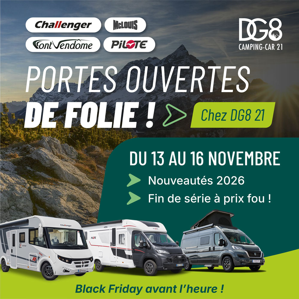 👉 Du 13 au 16 novembre inclus chez DG8 CAMPING-CAR 21 (proche DIJON)