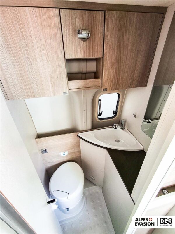 • Lavabo fixe et douche intégrée