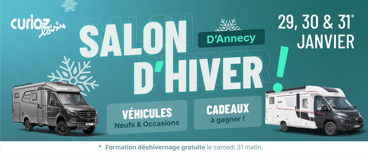 L’année 2026 démarre sur les chapeaux de roues chez CURIOZ LOISIRS ! Du 29 au 31 janvier, la concession se transforme en Salon d'Hiver du Camping-car qui se tiendra à La Balme-de-Sillingy, à seulement 10 minutes d'Annecy.