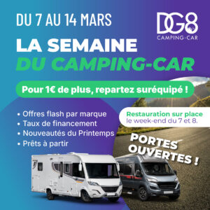 Votre rendez-vous du mois de mars à ne pas manquer ! Portes ouvertes du 07 au 14 mars avec ouverture exceptionnelle dimanche 8 mars, nous célébrons la semaine du camping-car dans nos concessions !